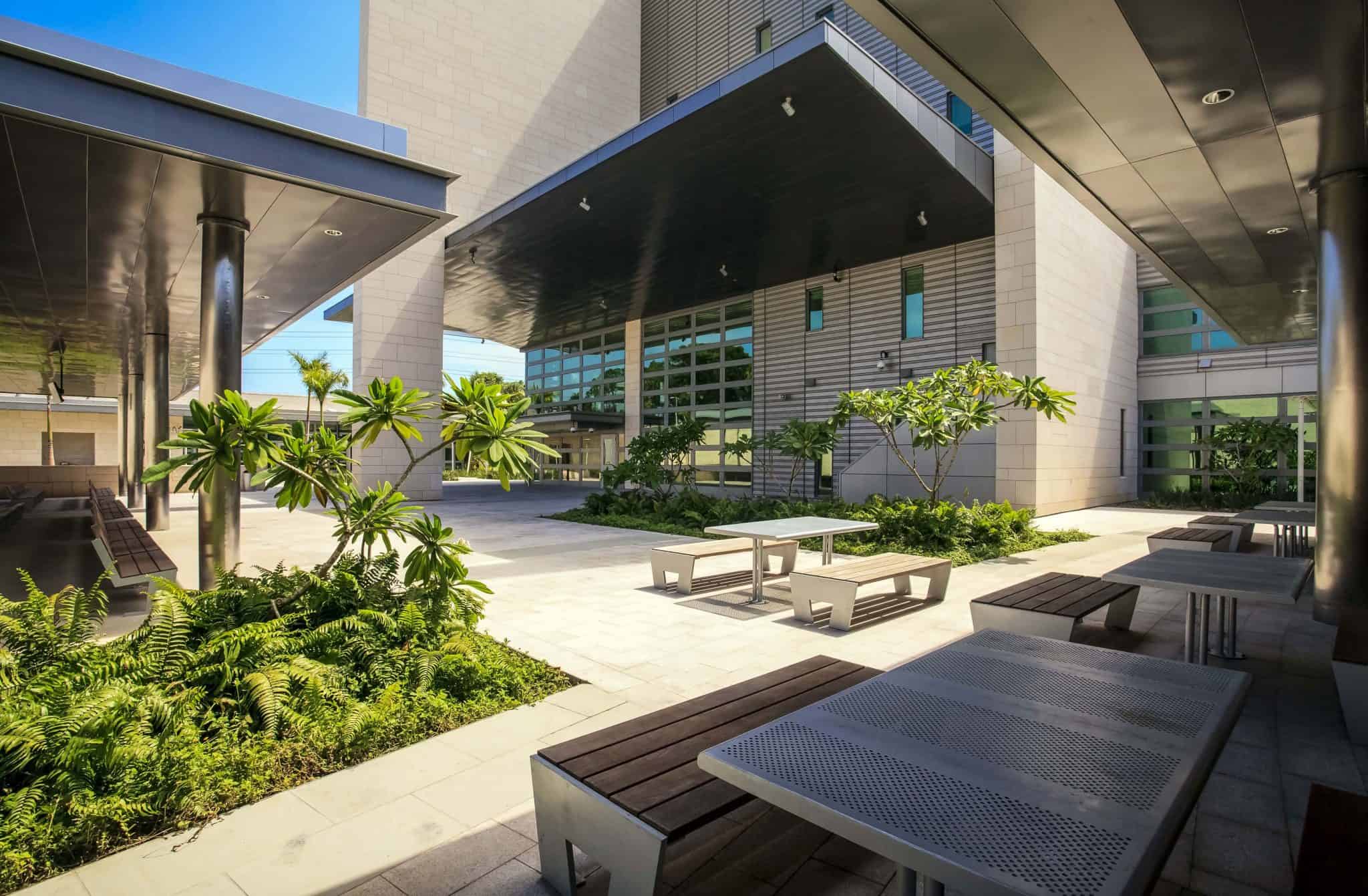 The U.S. Embassy in Santo Domingo is a compound for diplomatic purposes that reflect United States interests, such as visitor Visas to and from the U.S., support to U.S. citizens visiting or doing business with the Dominican Republic, and U.S. aid. The compound is meant to provide an oasis that represents the values and vitality of the United States of America. The embassy was located on an undisturbed site that had tremendous vegetation growth, a natural drainage channel, and afforded the re-use of waste water from an onsite treatment plant as irrigating water. SPVV’s work included a site inventory and the assessment of existing tree species and vegetation (along with their health and condition), site layout verification for compliance with federal government design guidelines, and plant type size and location selection. Plant selection was taken from a previous bridging design as part of the design-build process. Irrigation design included overall irrigation layout, system calculations, and estimates of annual water demands.